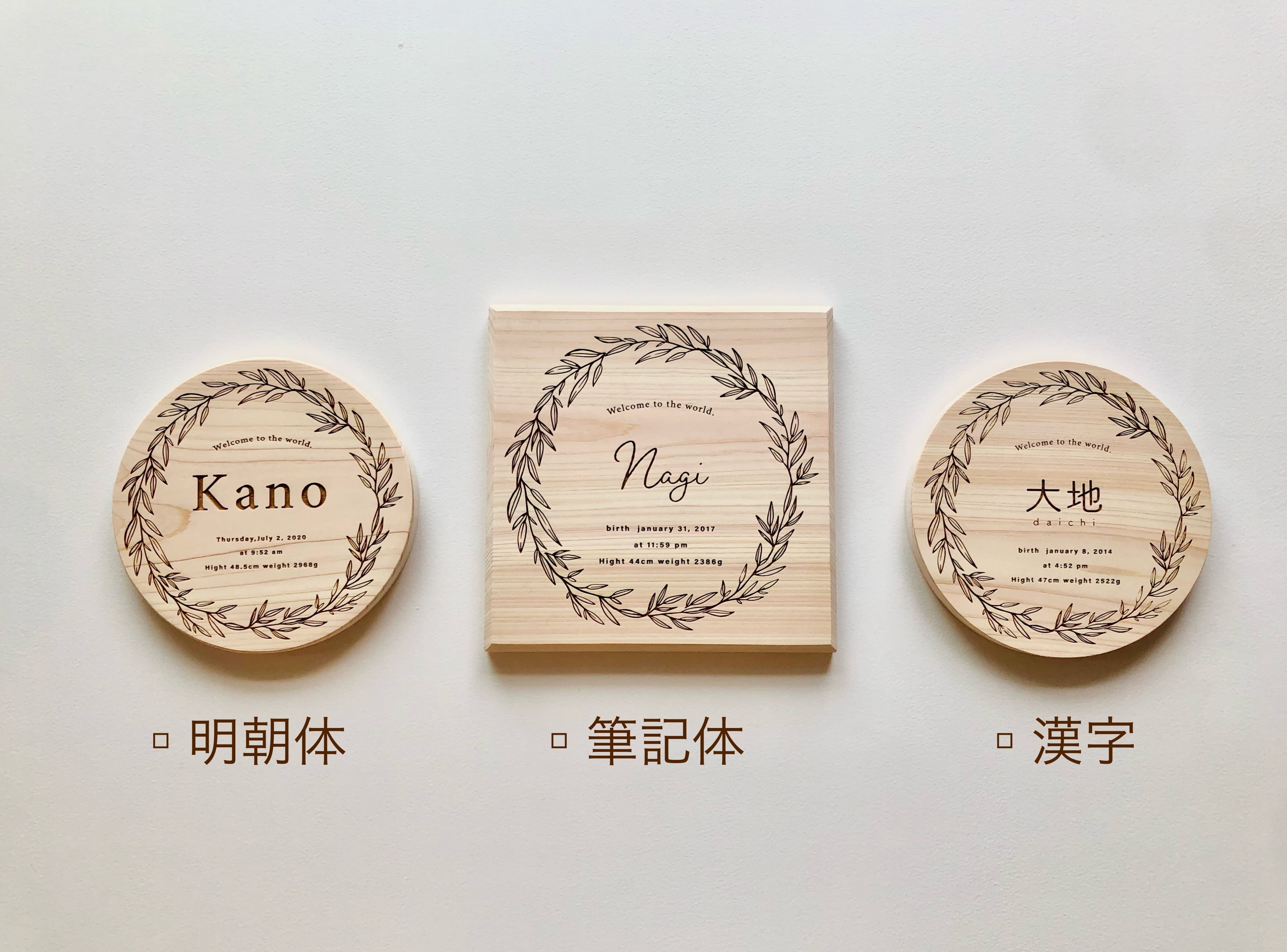 お子様のお名前と産まれた時のデータをひのき板に彫刻し、世界に一つの命名書「BIRTHBOARD(バースボード)」を作製いたします。