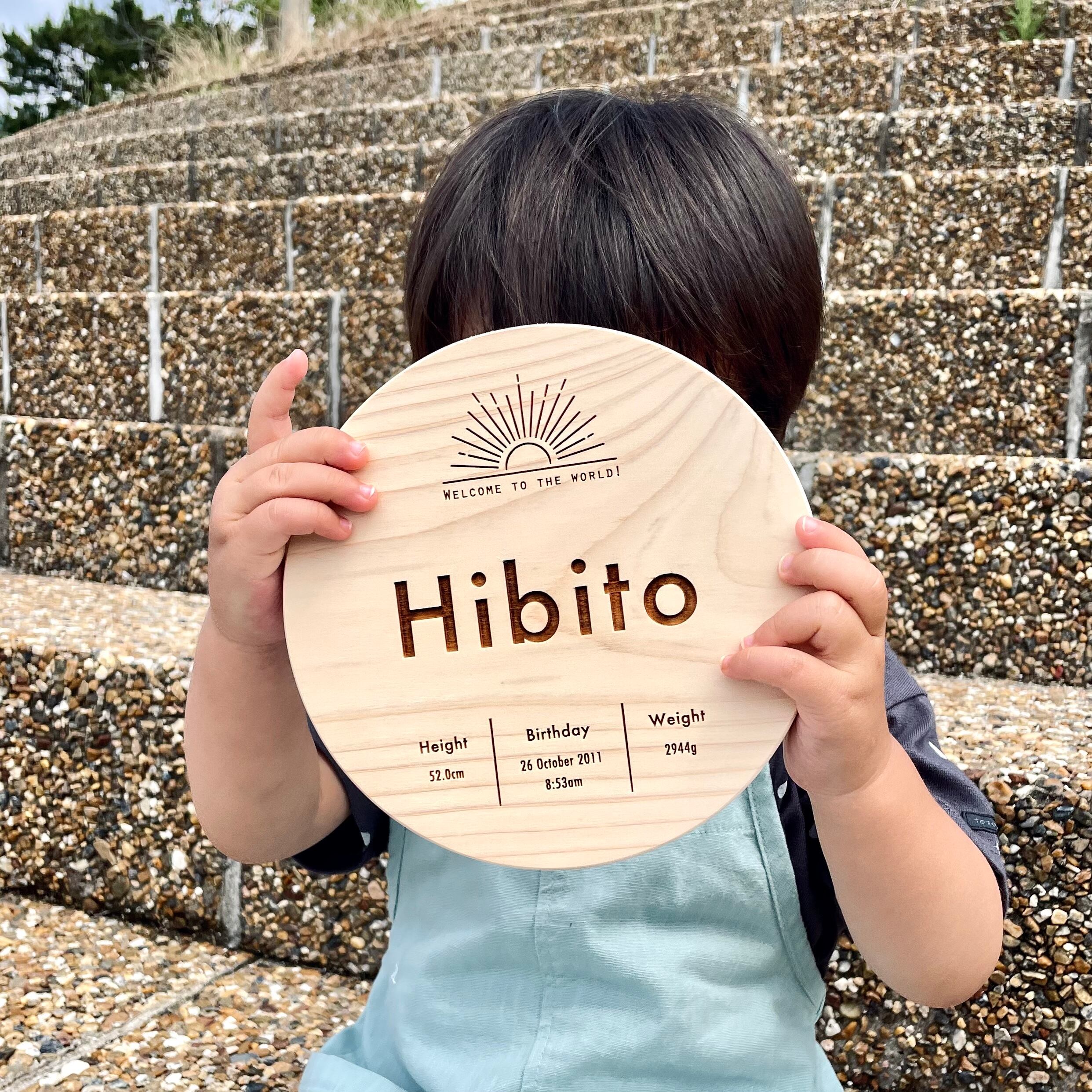 お子様のお名前と産まれた時のデータをひのき板に彫刻し、世界に一つの命名書「BIRTHBOARD(バースボード)」を作製いたします。